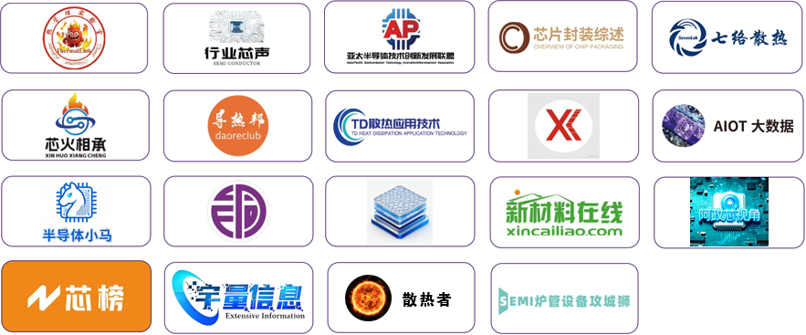 支持媒体:热管理实验室、半导体行业芯声、TD散热应用技术、凯文蔡说材料、芯榜、AIOT大数据、芯火相承、Semi-Asia、热控智汇圈、导热邦、未来半导体 FutureSemi、先进铜基材料、半导体小马、新材料在线、阿政芯视角、宇量信息、散热者、芯片封装综述、炉管设备攻城狮