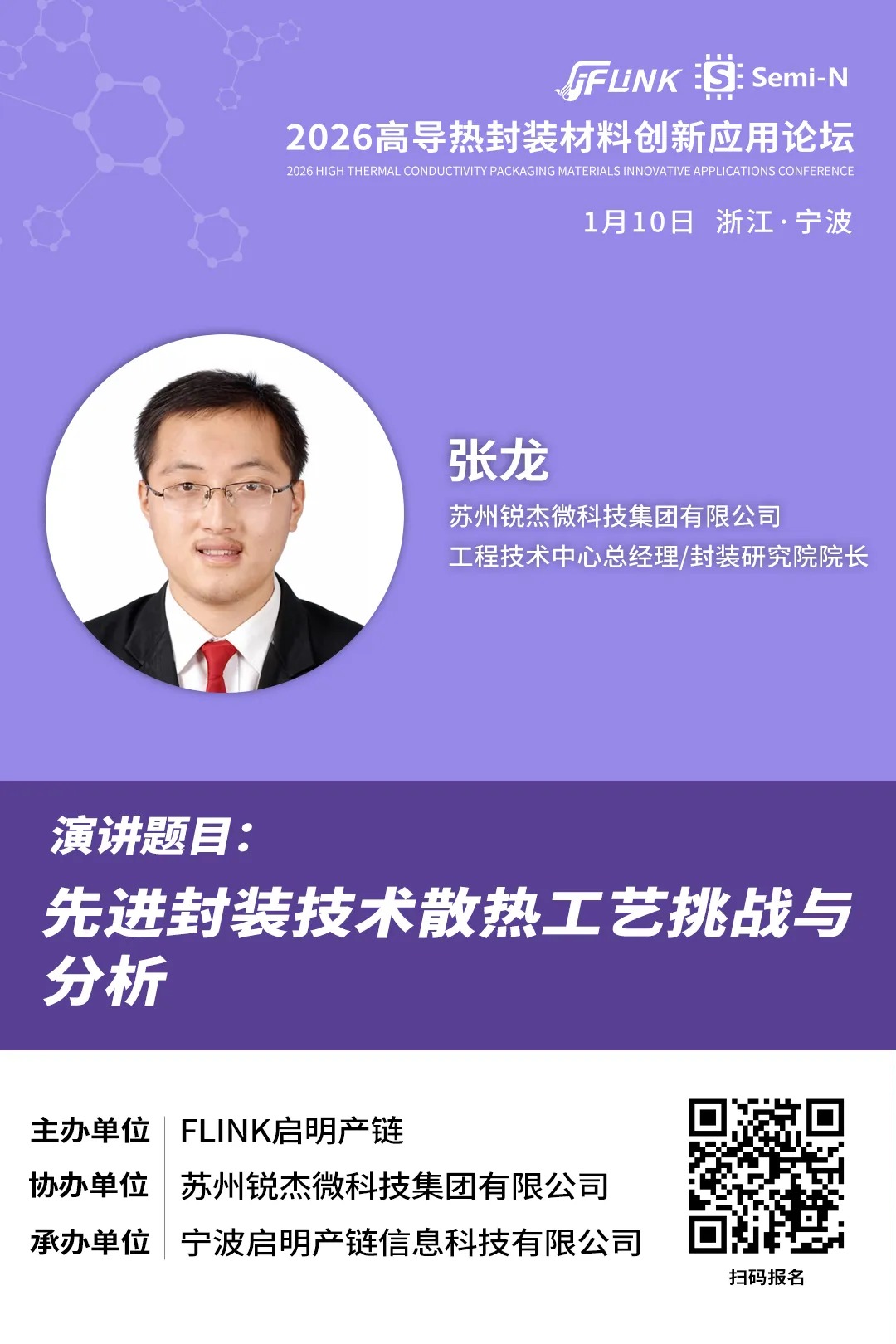 锐杰微封装研究院院长 张龙:先进封装技术散热工艺挑战与分析——2026高导热封装材料创新论坛(1月10日浙江宁波)