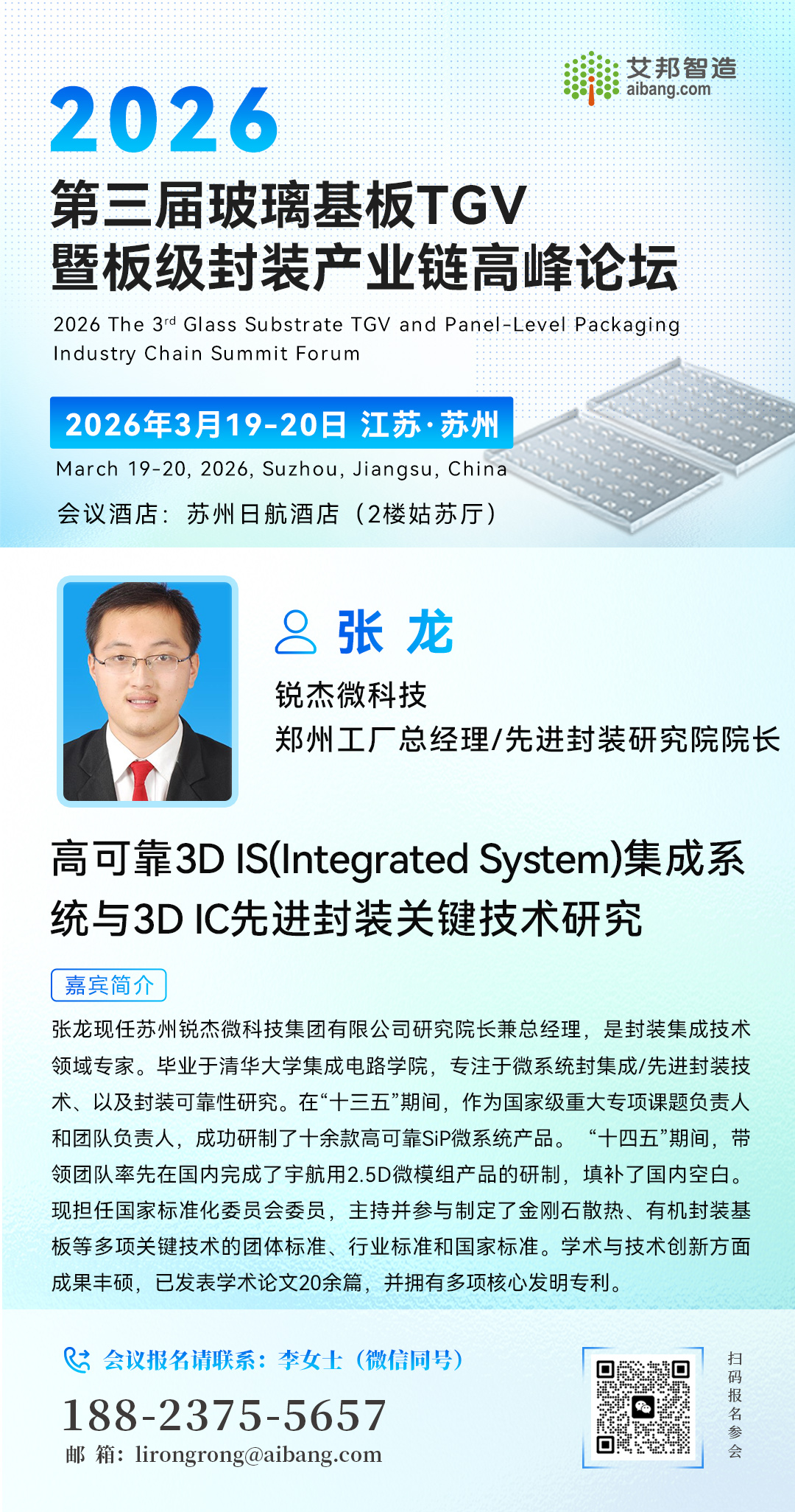 3月19日开幕!锐杰微科技诚邀您参加2026第三届玻璃基板TGV暨板级封装产业高峰论坛 2026-02-02 16:22 上一篇:无 下一篇:12.11苏州 | 共话先进封装与晶上系统新未来:锐杰微高级副总裁鲁明朕专场邀约